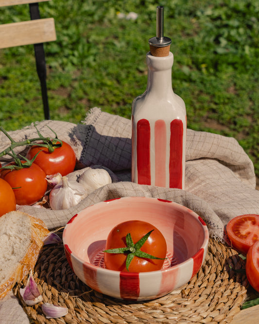 Nuestra colección incluye vajilla de cerámica hecha a mano, platos ralladores, aceiteras, mantequilleras, ensaladeras, jarras y más objetos diseñados para embellecer y dar calidez a tu mesa, tu cocina o cualquier rincón del hogar. Apostamos por la producción sostenible, el uso de materiales naturales, y una estética atemporal que conecta con quienes valoran lo auténtico y lo duradero.