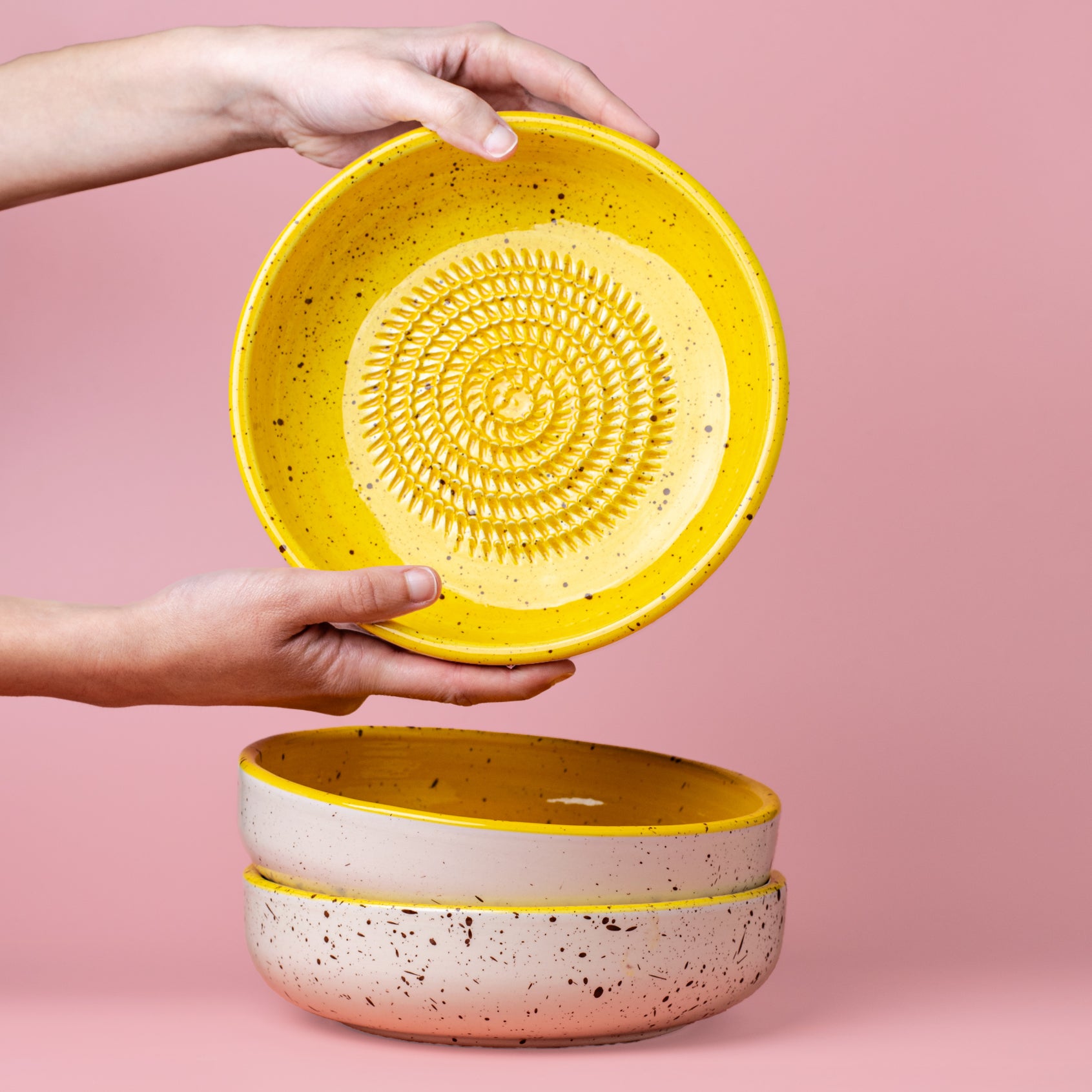 Nuestro Canela acaba de llegar y ya nos tiene enamoradas, el amarillo está de moda y ya está arrasando. Canela es el compañero ideal para darle vida a tus desayunos rallando el tomate y ajo, o para añadir ese toque especial a tu pasta con un poco de queso parmesano. Y para los más dulces, es perfecto para rallar fresas para un postre exprés.
