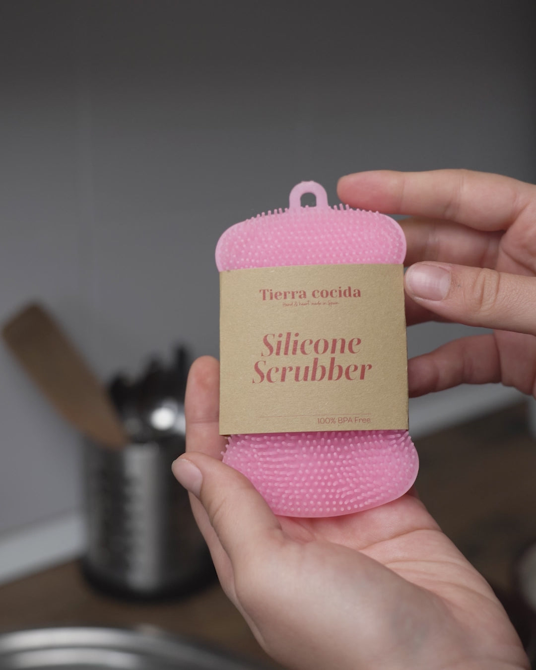 Nuestro estropajo está hecho de silicona de grado alimentario, libre de BPA, resistente, flexible y pensada para durar.