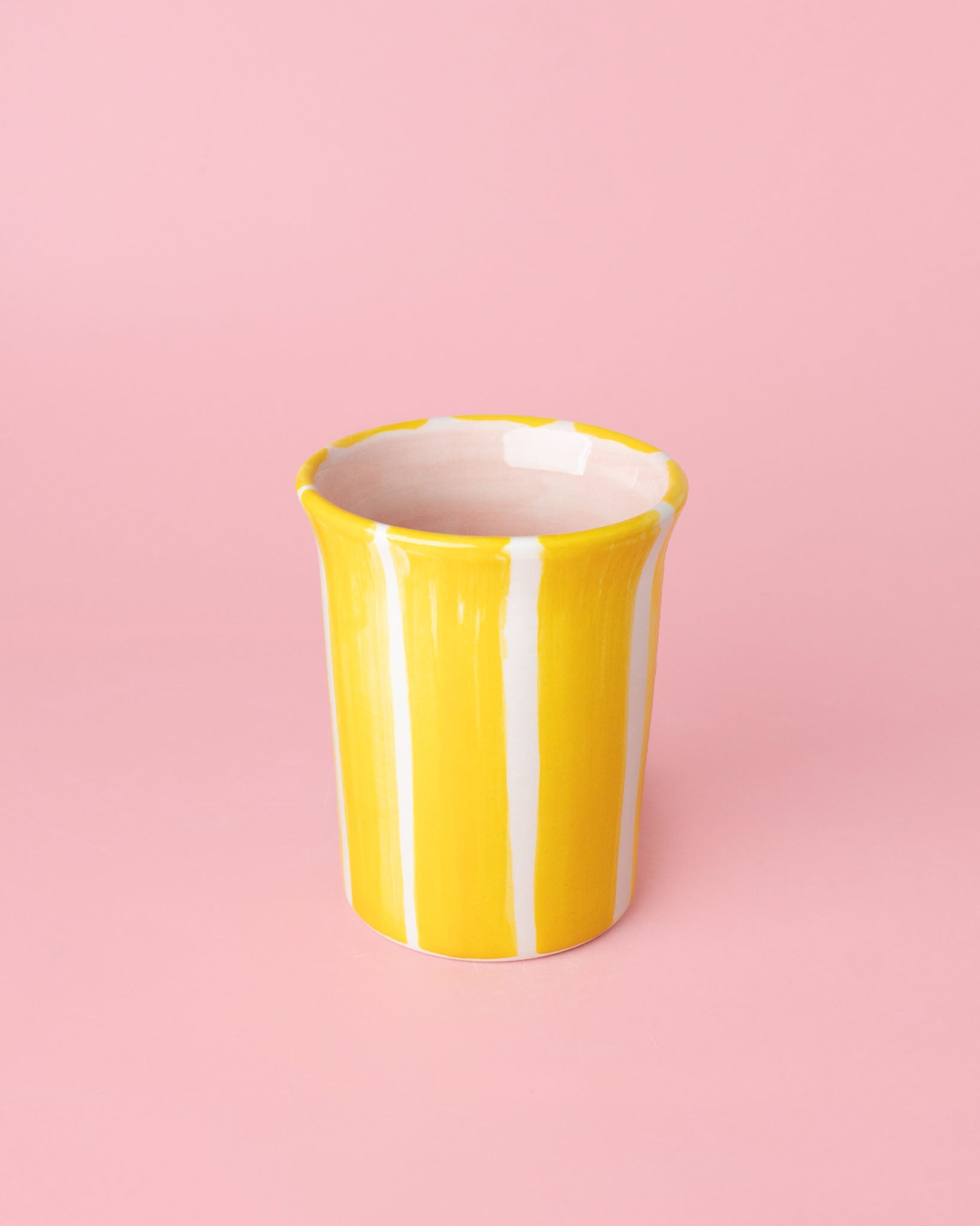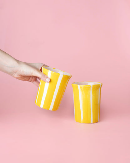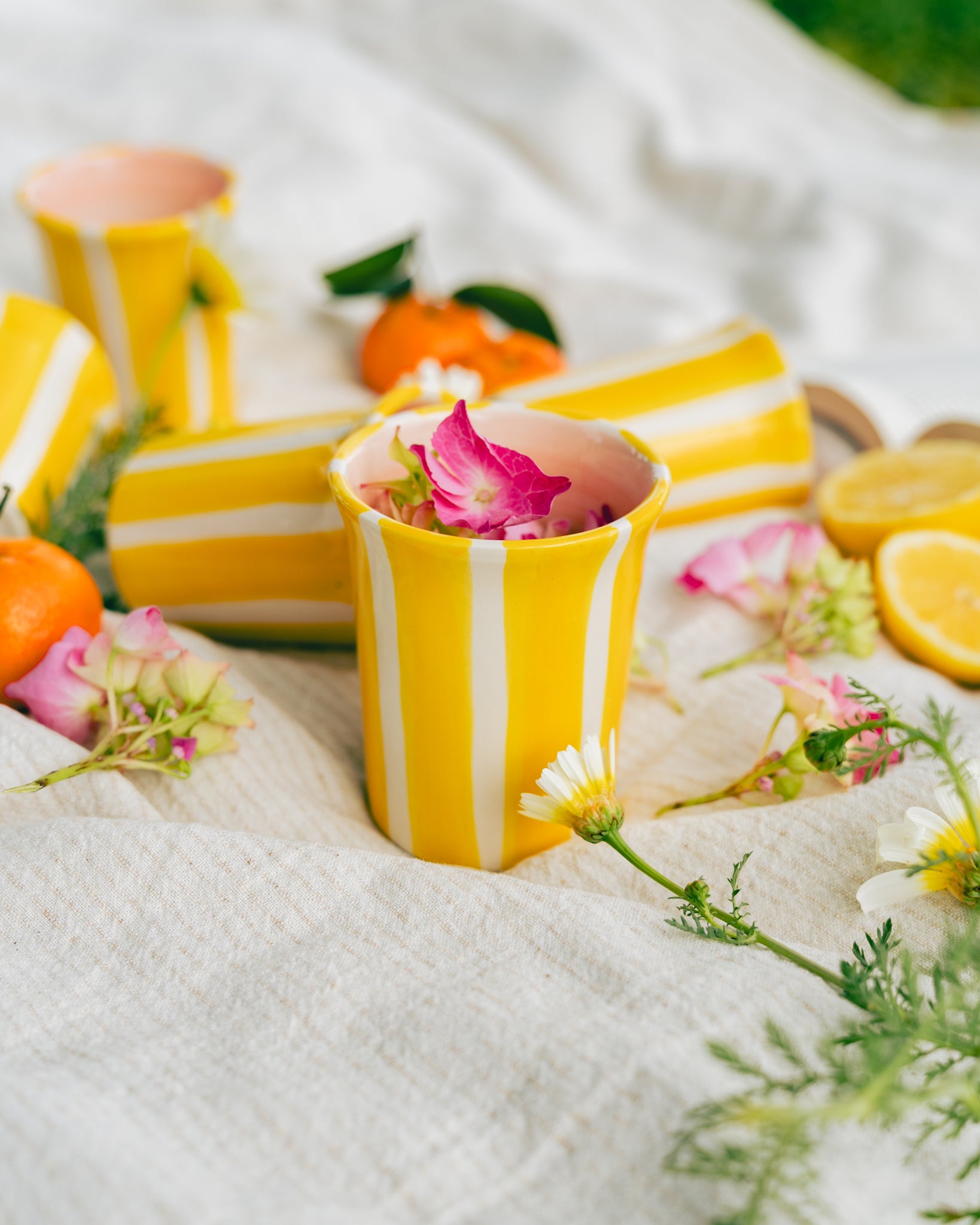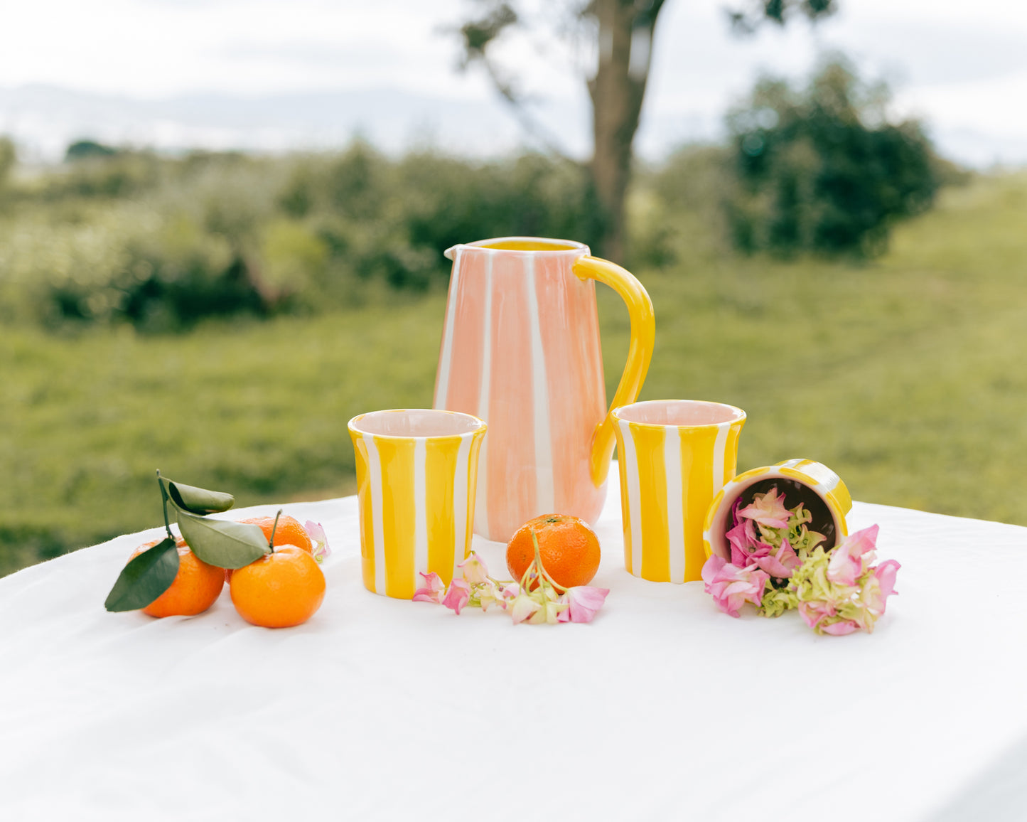 Llena tu mesa de color y alegría con este pack de vasos de cerámica artesanal en tonos amarillo y rosa pasteles de la colección Valentina. Son ideales para el día a día: desde un café por la mañana hasta una limonada fresca en una comida con amigas.
