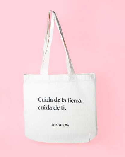 Lleva contigo un mensaje de sostenibilidad con nuestra bolsa de tela ecológica, diseñada con amor por Tierra Cocida. Confeccionada en algodón 100% natural, esta tote bag es el equilibrio perfecto entre estilo, funcionalidad y compromiso con el planeta.