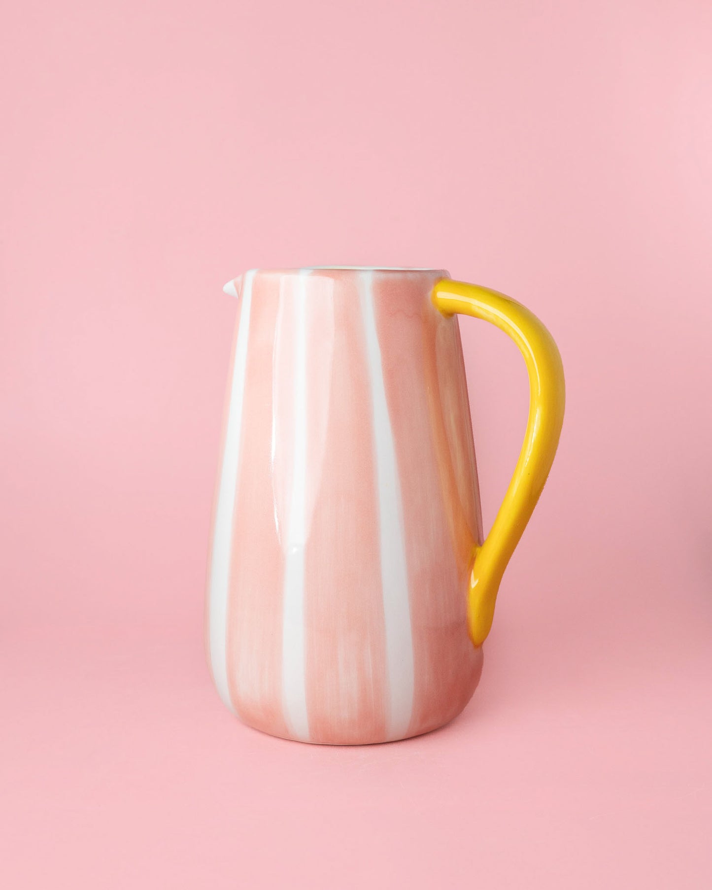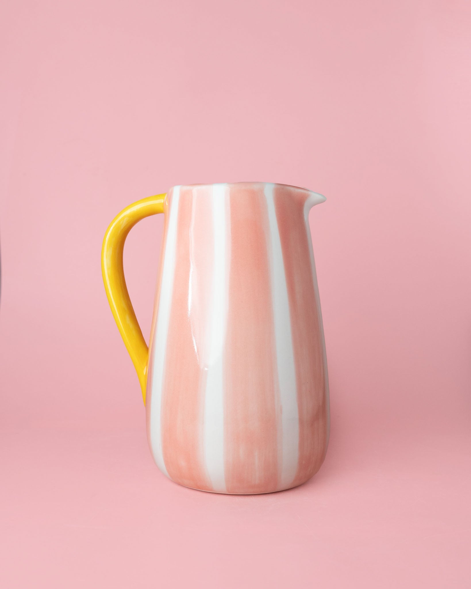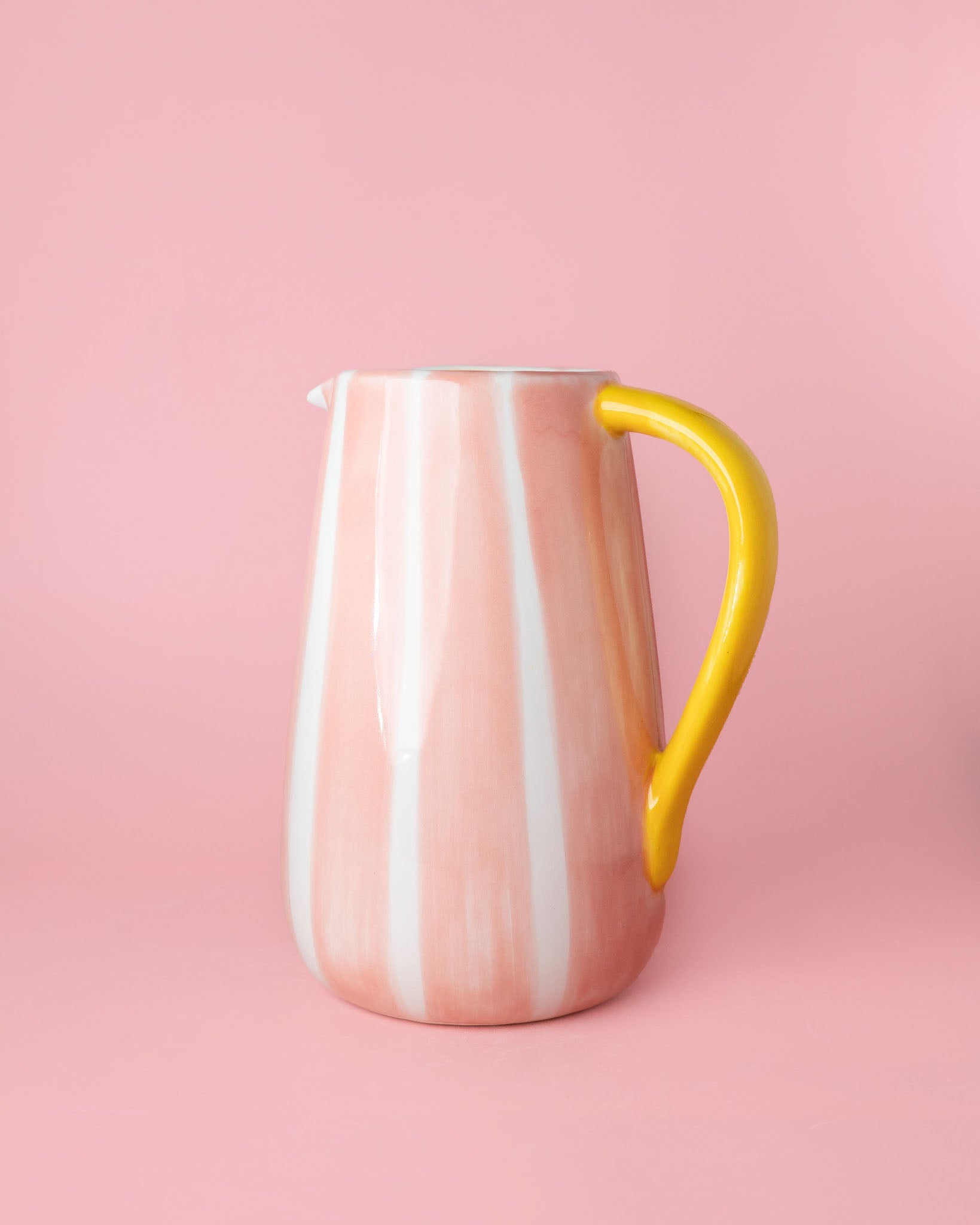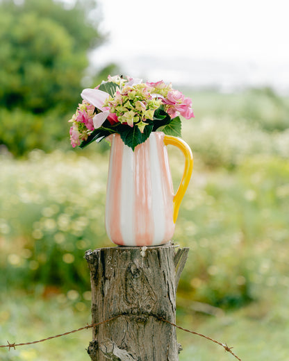 Lleva el color y la alegría a tu mesa con nuestra jarra de cerámica Valentina en tonos rosa y amarillo pastel. Un diseño suave y encantador que transforma cualquier rincón de tu hogar, ya sea para servir un refrescante té helado o como florero con mucho encanto.