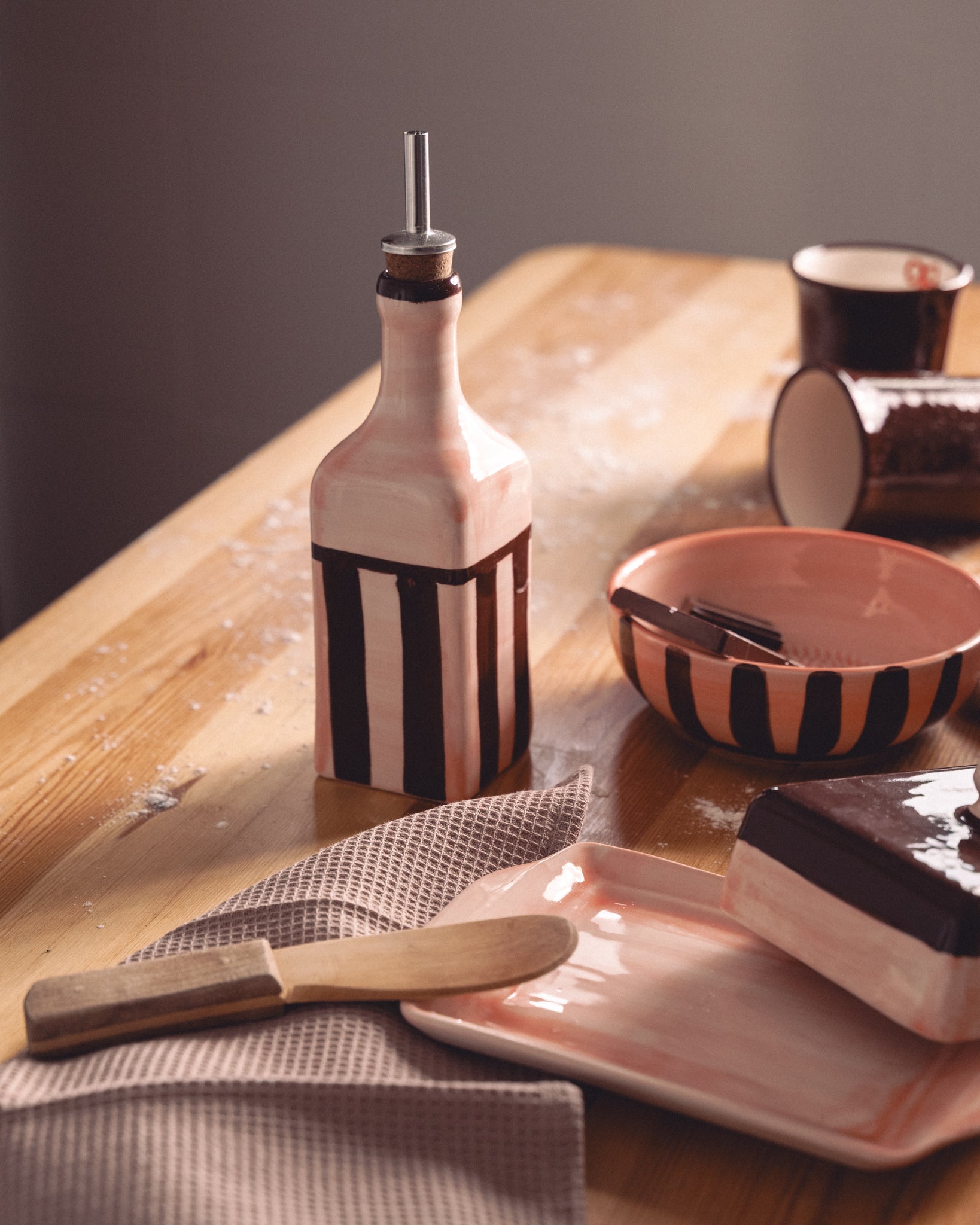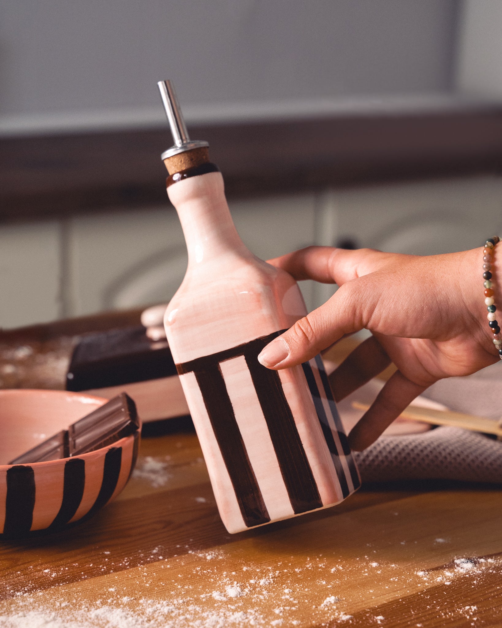 Con su diseño cálido en tonos cacao y su acabado artesanal, llega nuestra aceitera Chocolate, una pieza que invita a reconectar con la cocina sin prisas y ese aroma inconfundible a bizcocho recién horneado.