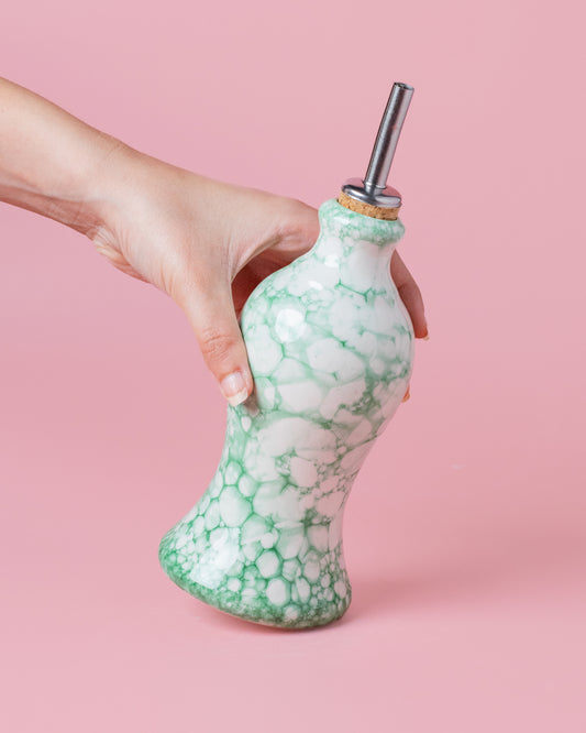 Ideales para servir aceite de oliva sin goteo y aliñar ensaladas en la mesa. También puedes usarlas para vinagres, salsas o aderezos caseros. Su diseño artesanal protege el aceite de la luz y el aire, alargando su frescura, y además decoran tu cocina con un toque artesanal.