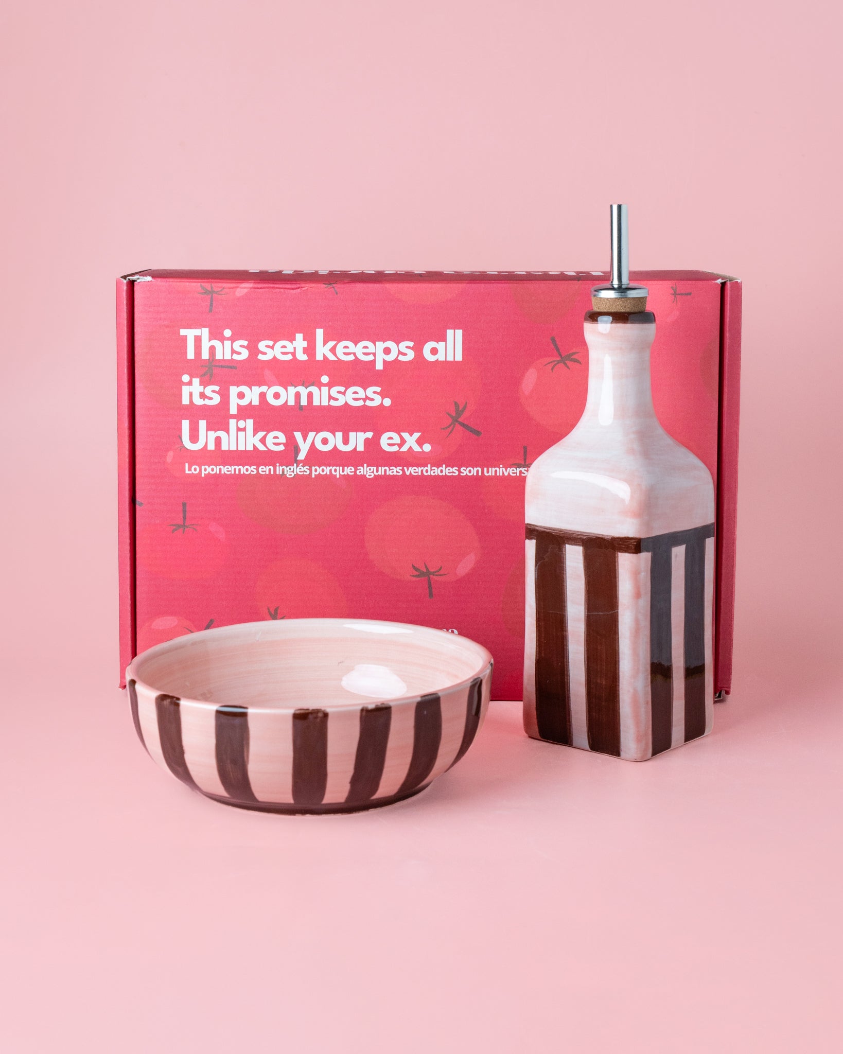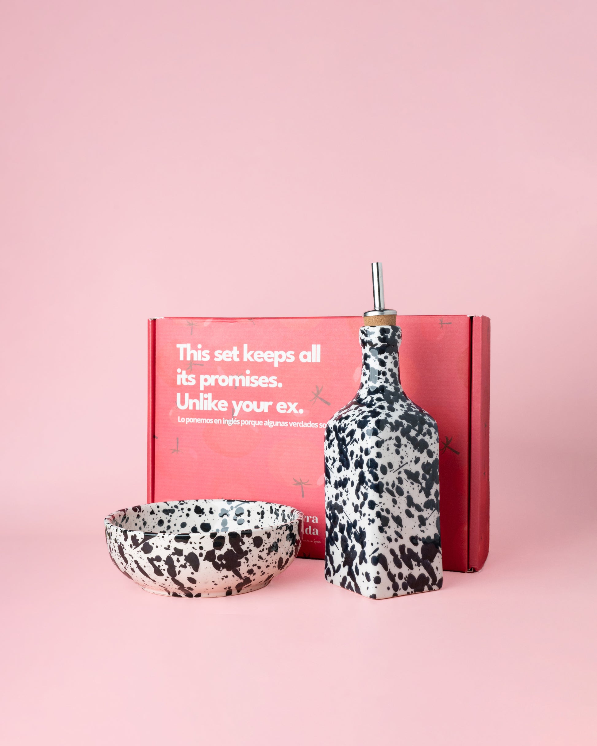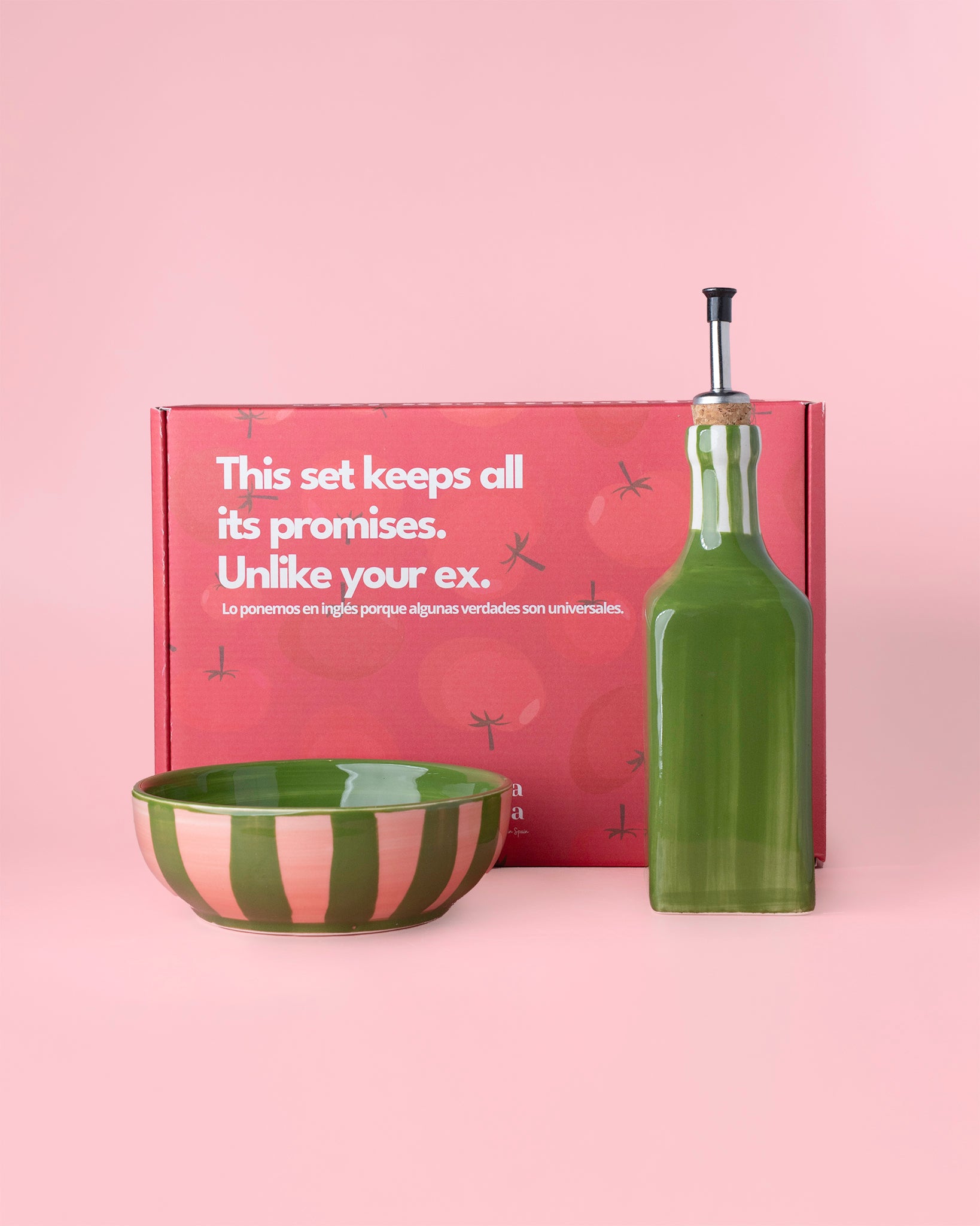 Y para darles ese toque final perfecto, la aceitera de cerámica (475 ml) con dosificador, te permite añadir tu AOVE favorito de forma precisa y sin manchar nada.