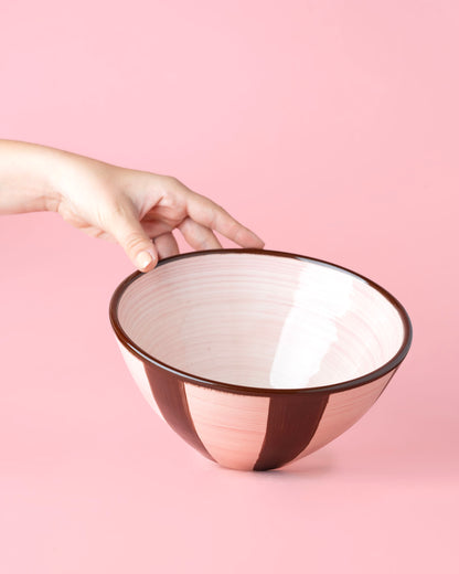 Con su diseño en tonos cacao y rosa pastel, nuestra ensaladera Chocolate es una pieza que combina funcionalidad y carácter artesanal, pensada para quienes disfrutan de la cocina sin prisas.