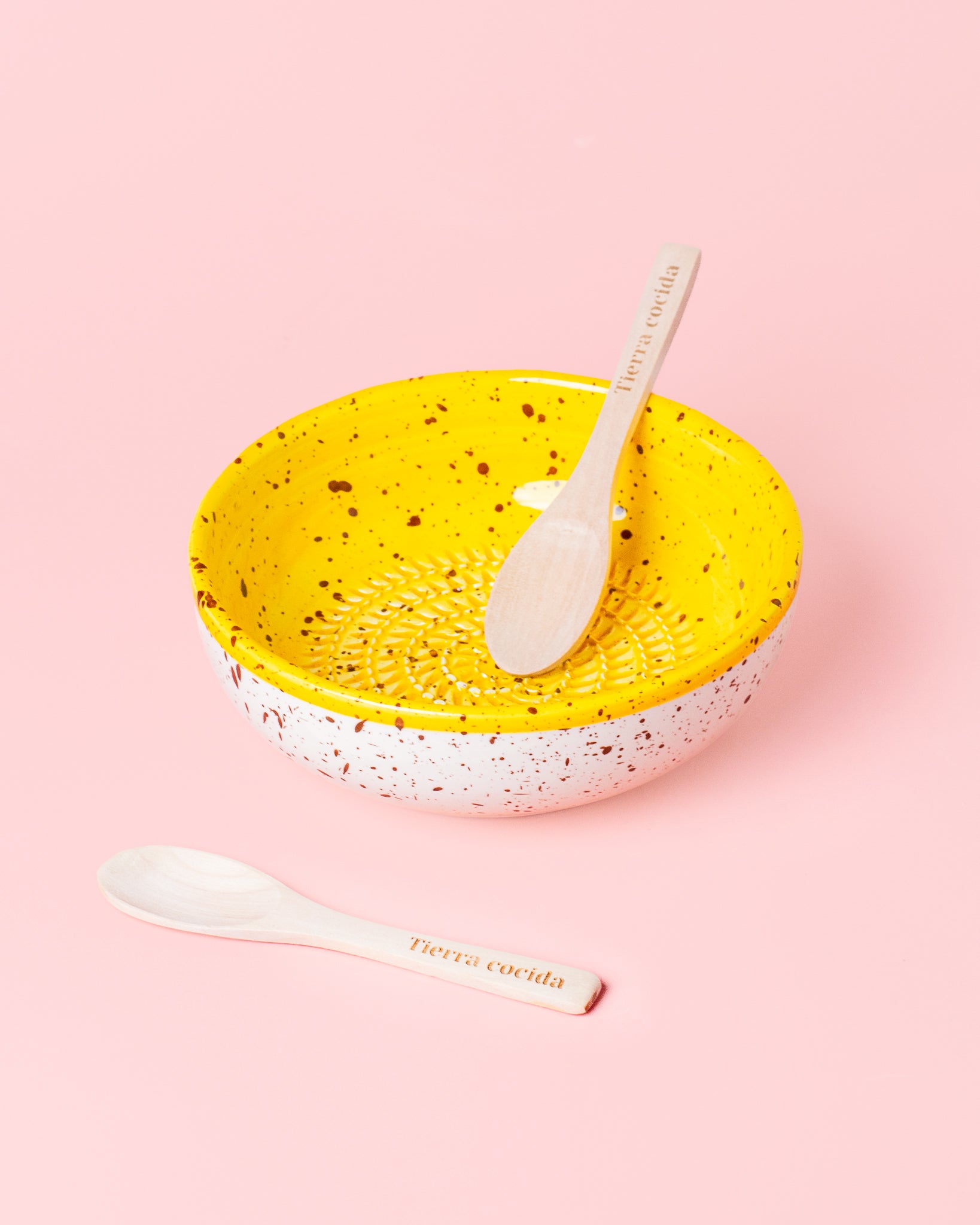 Nuestra cuchara de madera es la compañera ideal para tu plato rallador. Diseñada para ser segura tanto para tus alimentos como para la cerámica, te permite retirar y verter los alimentos rallados cómodamente, sin riesgo de dañar la superficie.