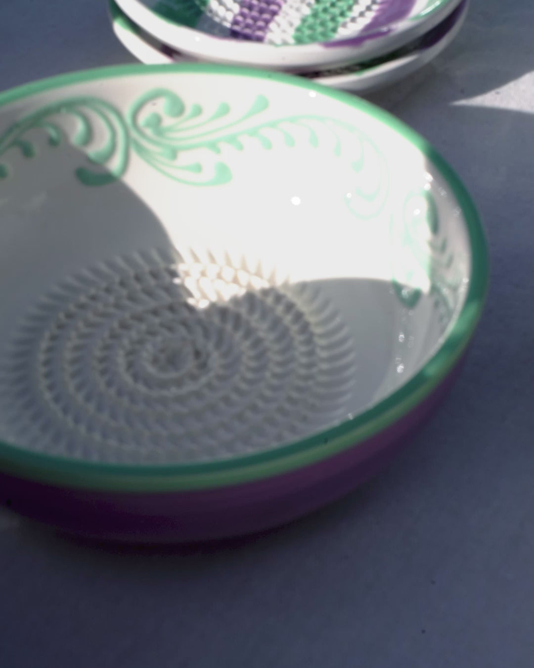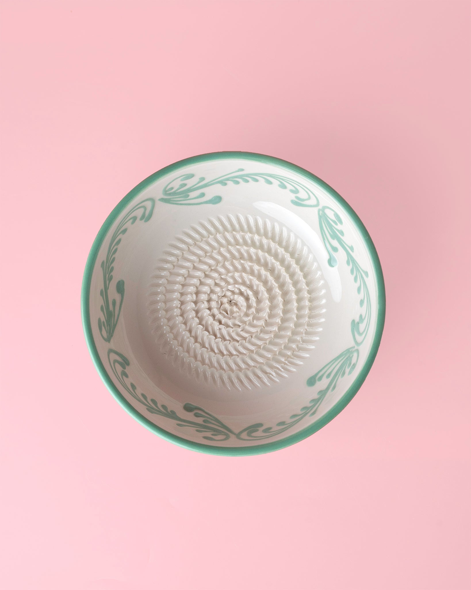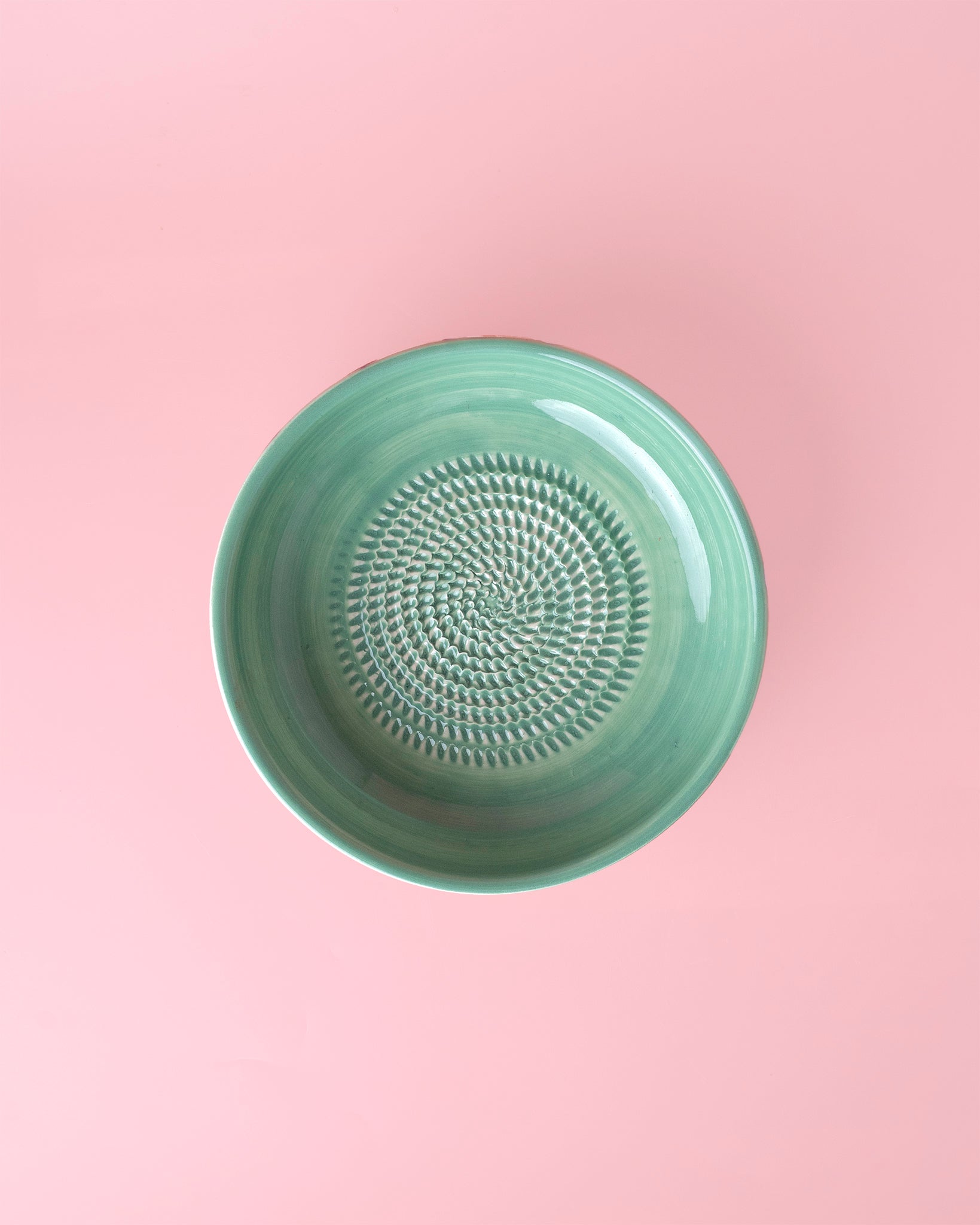 Hay piezas que transforman los pequeños gestos del día a día, y nuestro plato rallador Esmeralda es una de ellas. Hecho y pintado a mano en España, une la belleza de la cerámica con la sencillez de lo esencial: rallar ajo, tomate o jengibre con facilidad, sin cuchillas ni prisas.