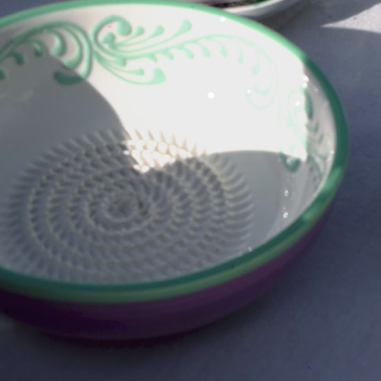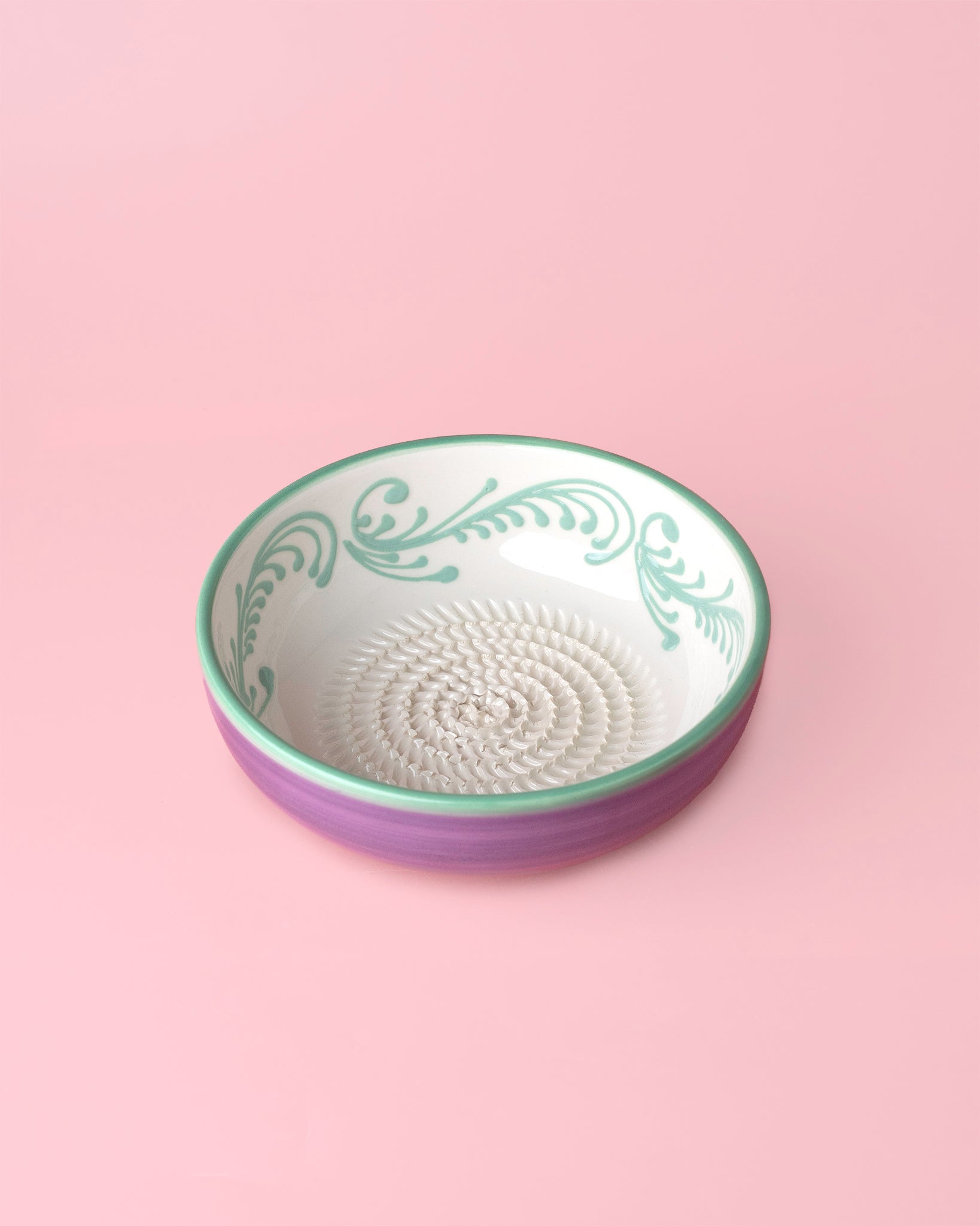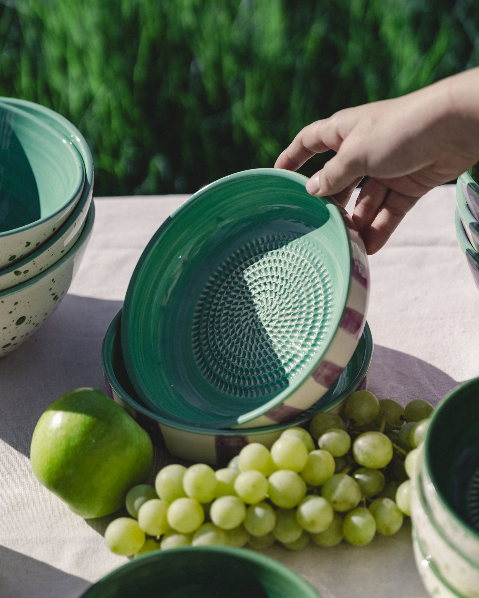Hay piezas que transforman los pequeños gestos del día a día, y nuestro plato rallador Esmeralda es una de ellas. Hecho y pintado a mano en España, une la belleza de la cerámica con la sencillez de lo esencial: rallar ajo, tomate o jengibre con facilidad, sin cuchillas ni prisas.