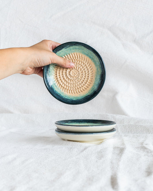 Nuestros platos ralladores de cerámica artesanal están diseñados para transformar la experiencia en tu cocina. Fabricados completamente a mano en España mediante técnicas tradicionales de cerámica, estos utensilios no solo facilitan la preparación de alimentos —como ajo, jengibre, nuez moscada o queso duro— sino que también aportan un valor estético elevado gracias a su acabado cuidado y estilo auténtico.