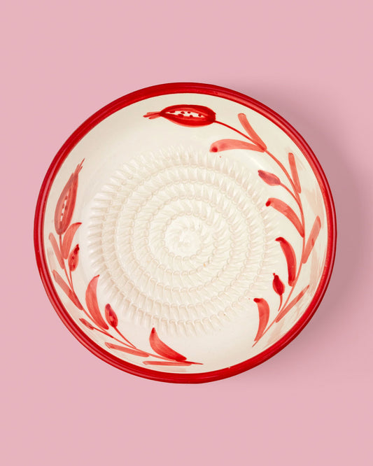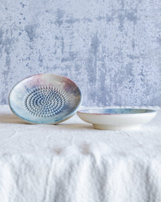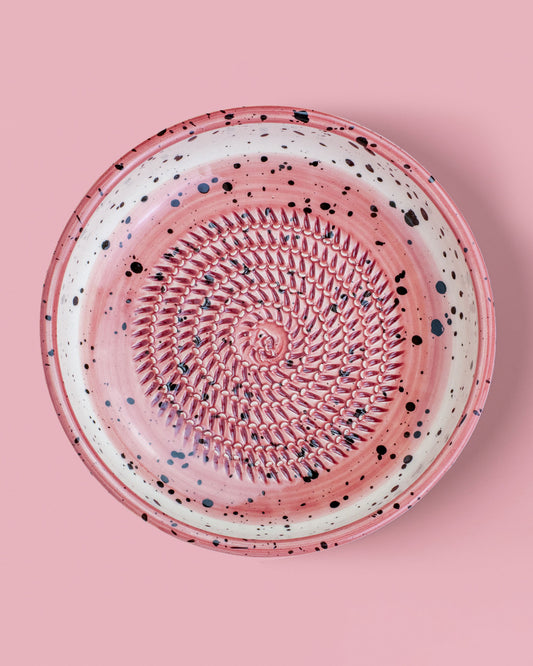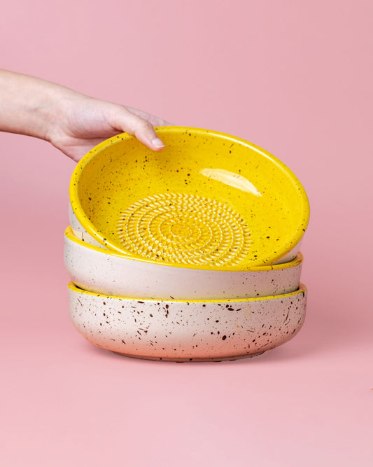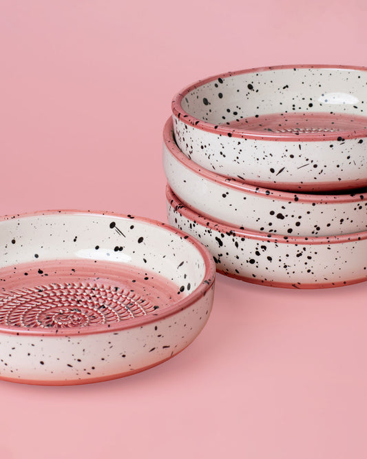 Cada plato rallador de cerámica combina funcionalidad y diseño. La superficie texturada permite rallar con facilidad, mientras que el material cerámico asegura durabilidad y un mantenimiento sencillo. Ideal para una cocina saludable, estos platos fomentan la preparación de ingredientes frescos y naturales. Al mismo tiempo, su aspecto de cerámica artesanal convierte cada pieza en un elemento de decoración para interiores: puedes exhibirlo en la encimera o incluso utilizarlo como parte de tu vajilla de cerámica cuando no esté en uso.