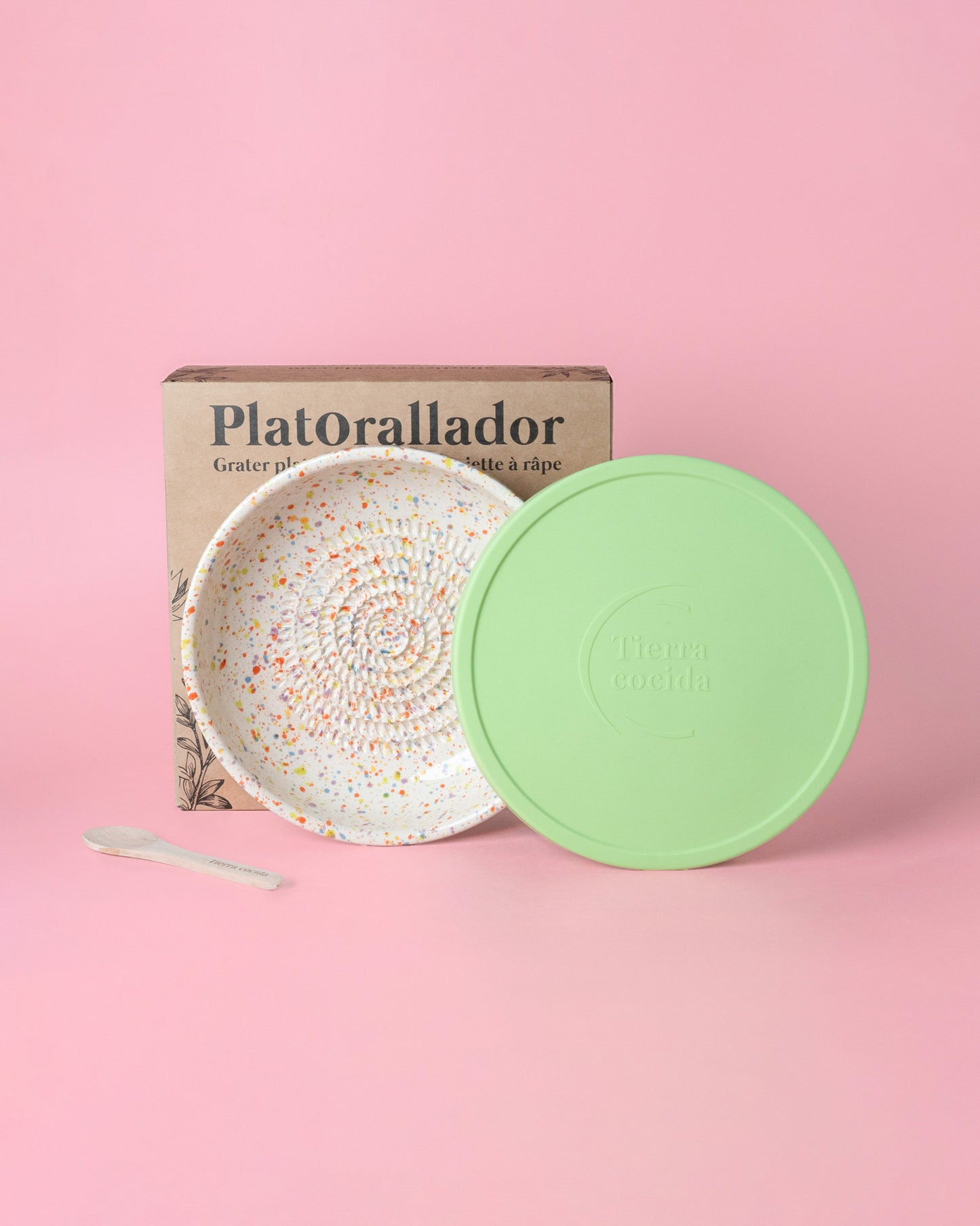 Gracias a la tapa de silicona, nuestro plato rallador más querido se convierte en un práctico 3 en 1: ralla, sirve y guarda sin cambiar de recipiente.
